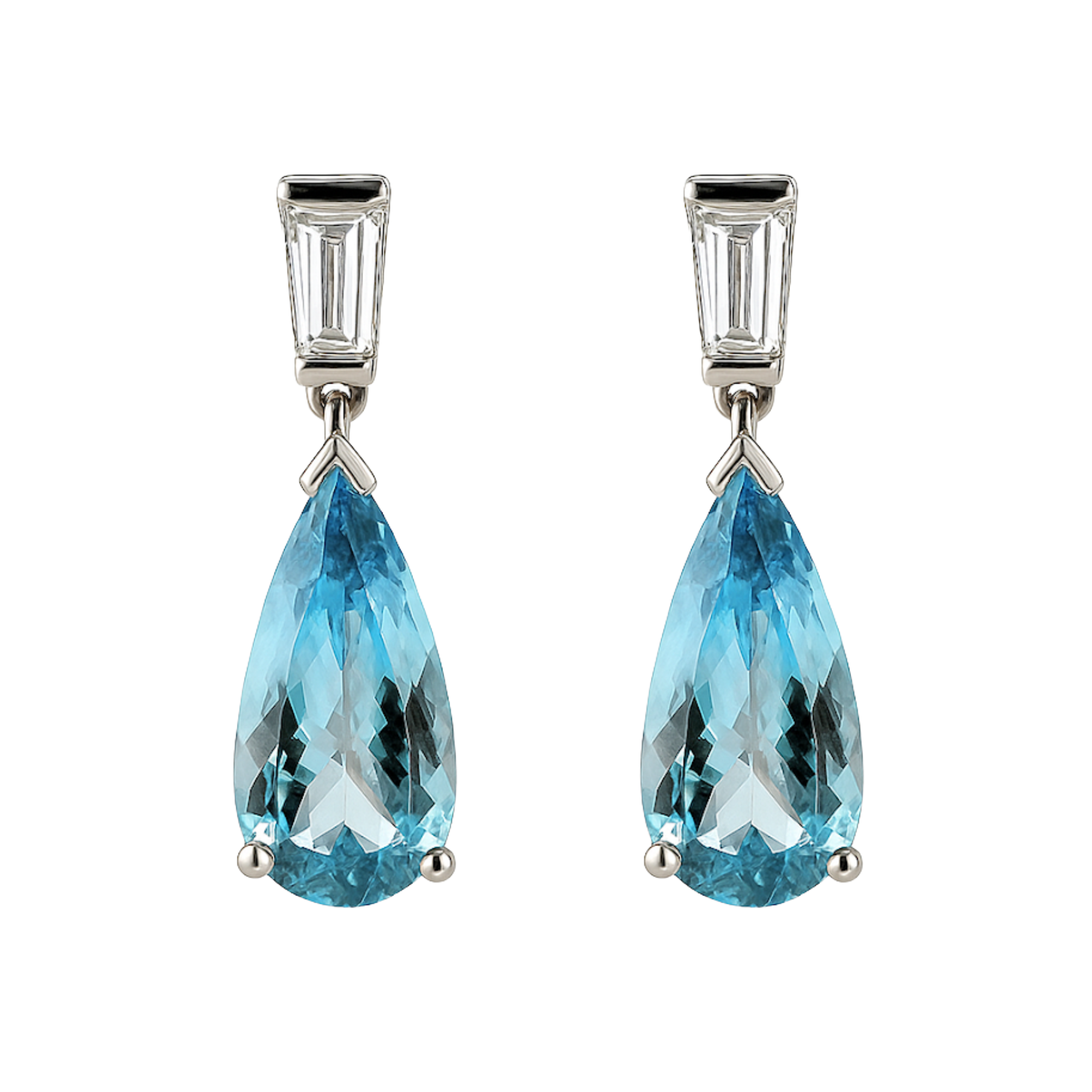 One pear cut Aquamarine = 3.06ct of colour Light Blue, measuring 16.12 x 8.03 x 4.78mm.