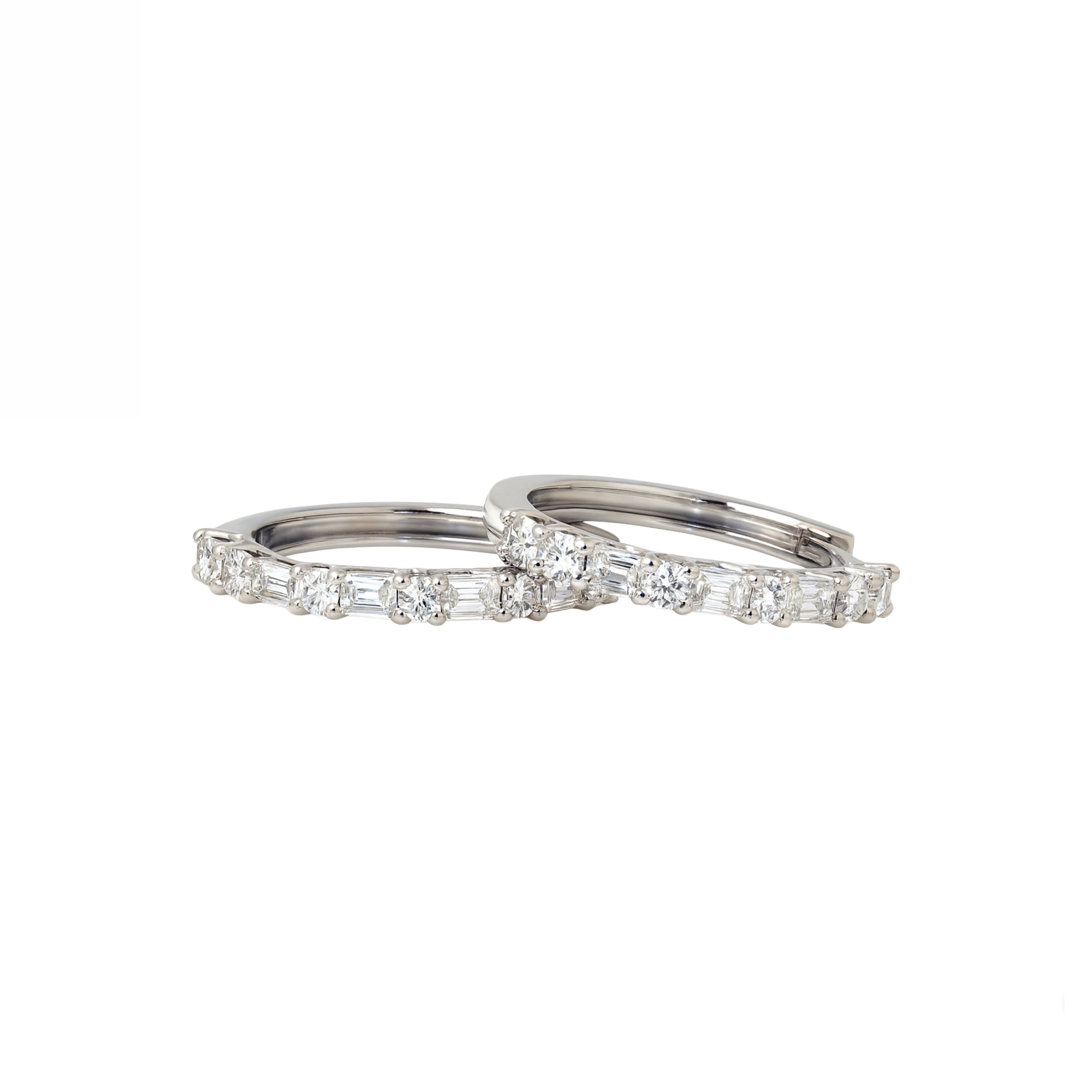 Baguette & Round Diamond Hoop Earrings