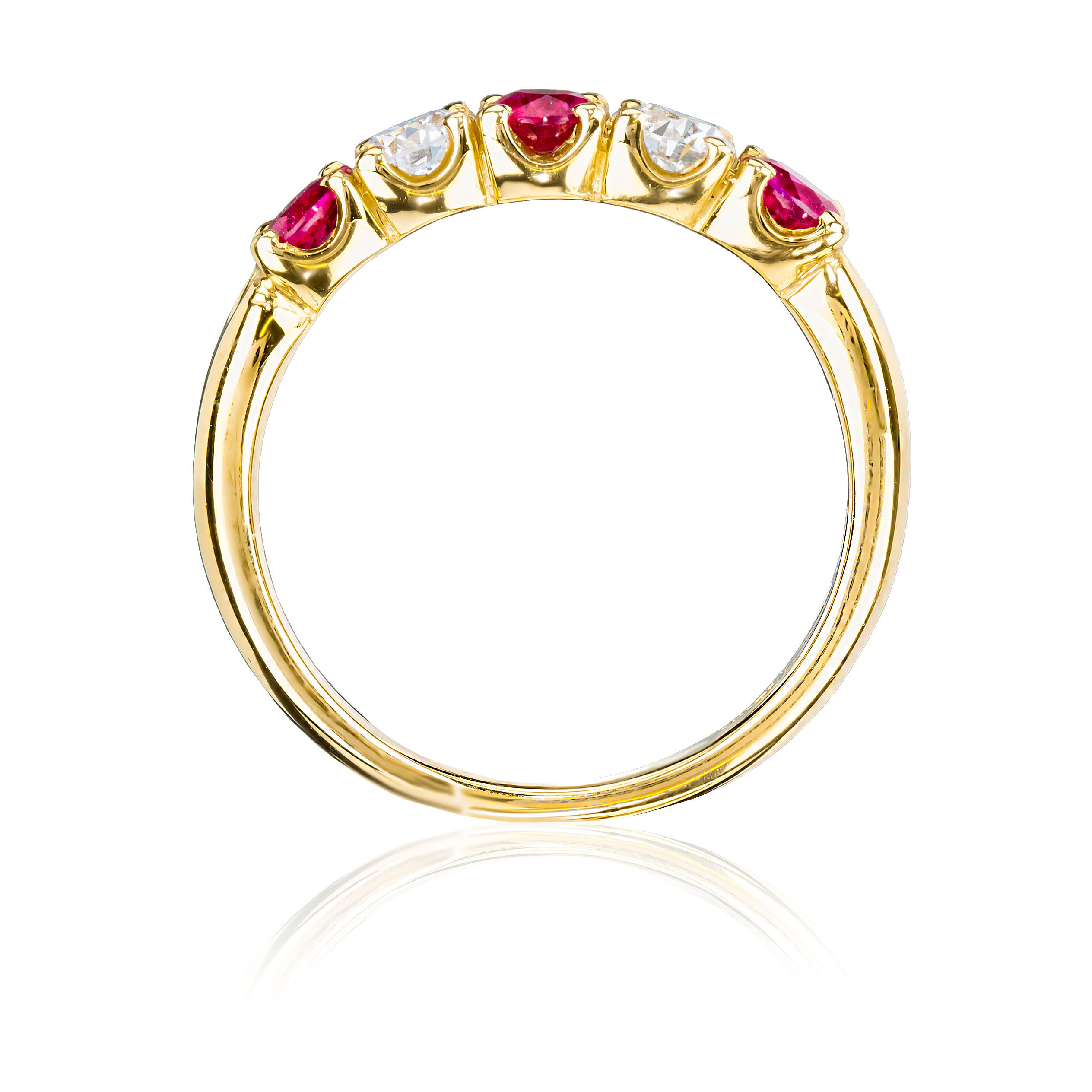 Indulge in the brilliance of perfectly cut diamonds and the rich, vibrant hue of rubies. This ring is a harmonious blend of sophistication and luxury, making it the perfect addition to any jewelry collection. Whether you’re marking a special occasion or simply indulging in a piece of timeless beauty, our 18-carat yellow gold ruby and diamond ring is designed to captivate and enchant.