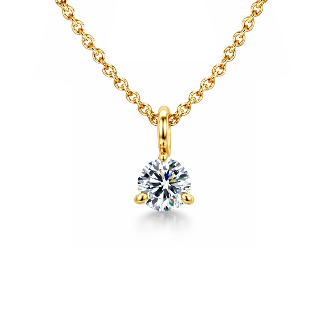 A classic 18k yellow gold solitaire diamond pendant, featuring a round brilliant cut diamond, of 0.23ct, ideal cut, colour D, VS1 clarity, set in a 3-Claw setting. Chain sold separately.