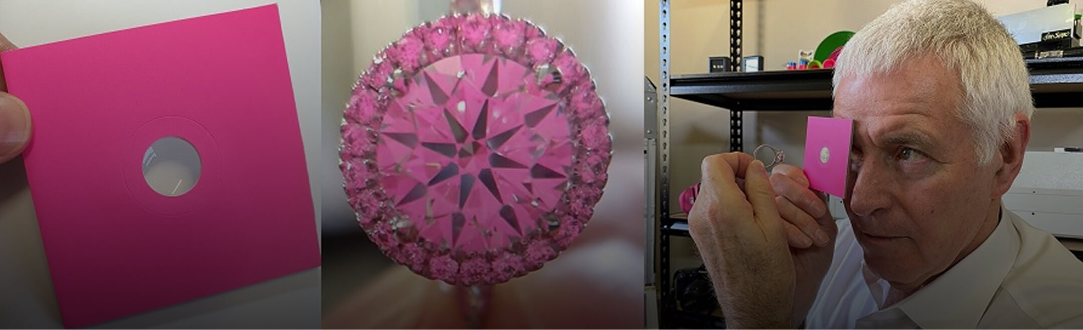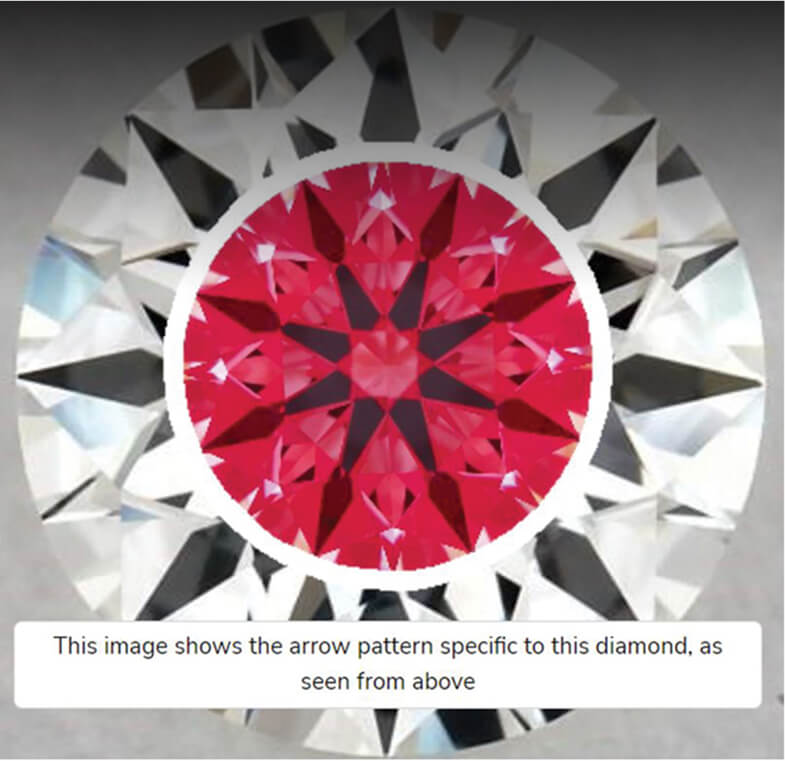 A truly brilliant diamond appears bright pink or red with a sharp black star and minimal white or pale areas – except for small ‘V’-shaped white spots near the edge. This pattern indicates maximum sparkle from every angle.