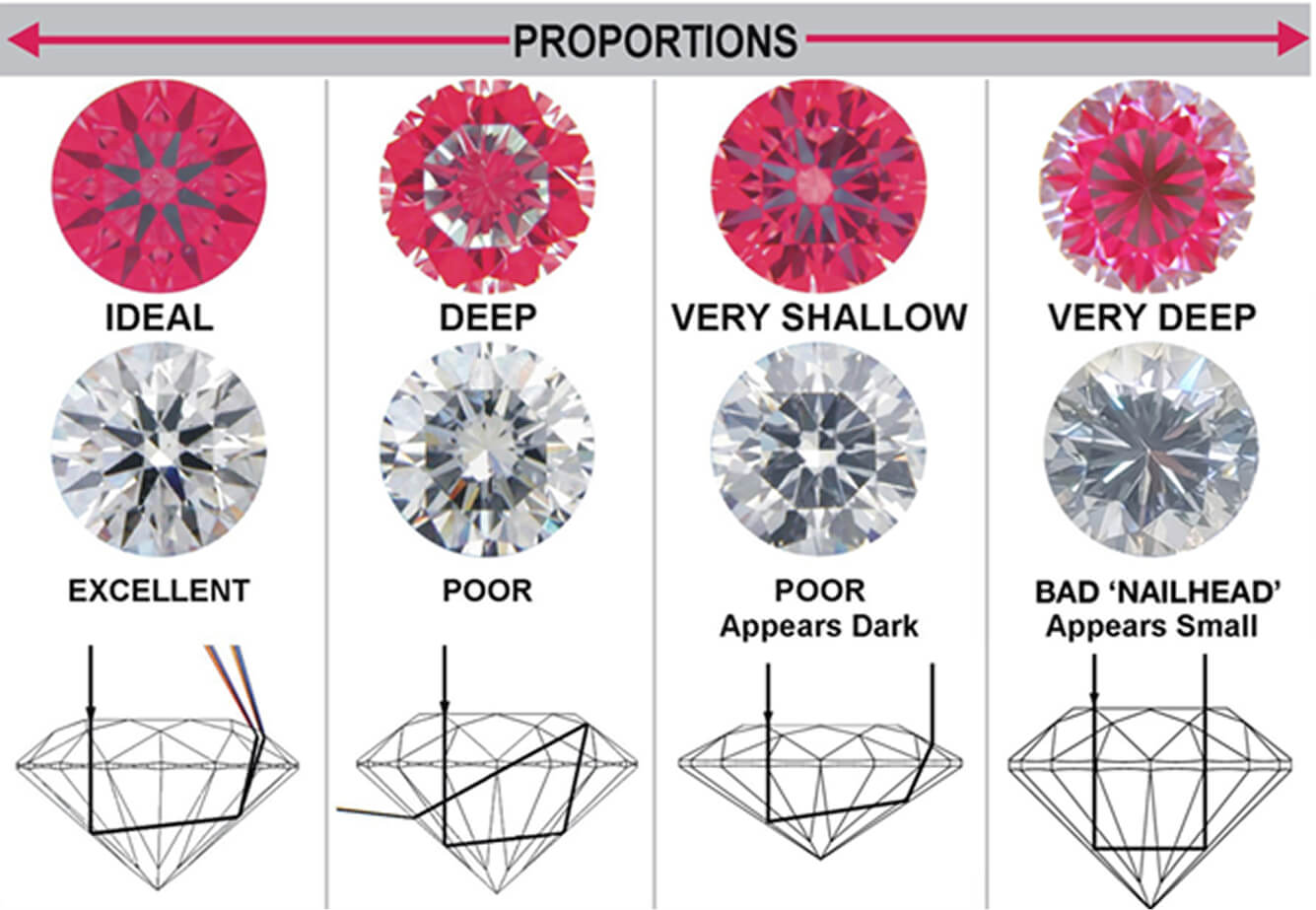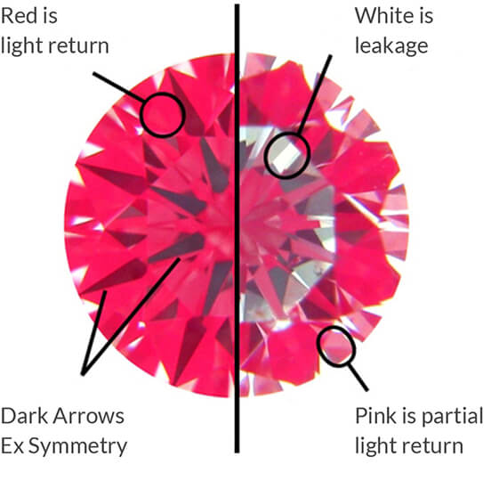 Light should stay in the diamond and only escape out the top. If light leaks out the bottom, the diamond loses brilliance and looks smaller than it actually is. Most diamonds – even expensive ones – leak too much light.